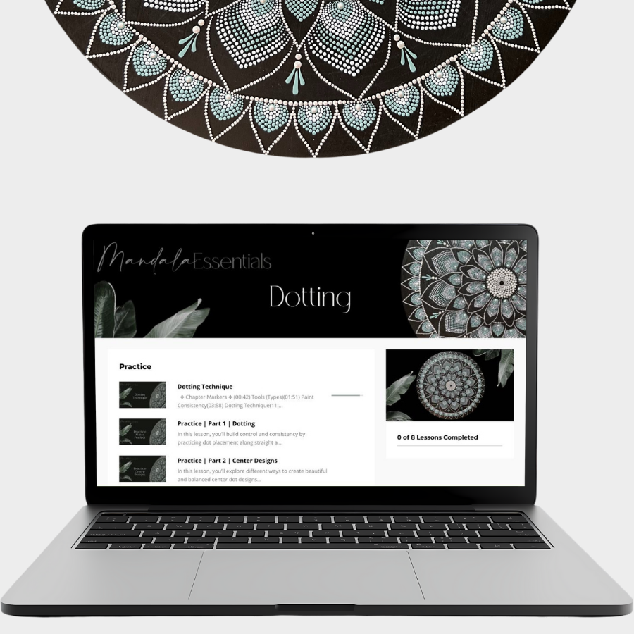 A comprehensive module that ensures you become an expert at priming your round, creating a smooth base coat, finding the center point on any circle, and placing guidelines that keep your designs precise from start to finish. Every beautiful mandala begins with meticulous preparation.